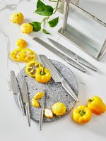 Cuisine::pro iD3 Samurai knives are razor-thin and light weight making for an extremely fast, agile chopping and slicing experience. Every curve has been designed for precise performance without bruising or tearing delicate foods. The asymmetrical handle design combined with the trademarked MicroDot® Technology, provides more grip and safer knife control.