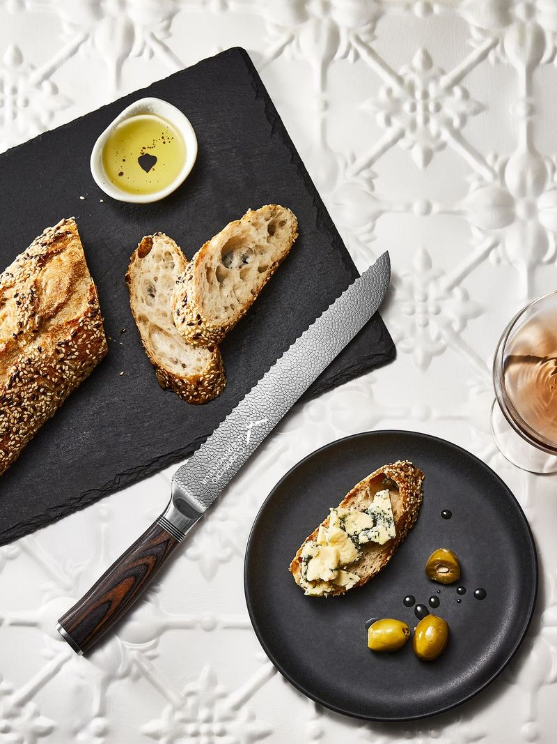 The Cuisine::pro Le Connoisseur Bread Knife allows you to cut thick crusted breads without crushing or tearing their soft centers. Its measured serrations help cut through foods with tough exteriors.