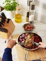 The Cuisine::pro Sabre Knife Block includes 19 versatile pieces, housed in a stylish wooden knife block. Made from premium quality German stainless steel, the blades have been forged and heat-treated to ensure long-lasting sharpness and greater strength. A tapered cutting edge and hand-sharpened blades ensure a razor-sharp cutting edge. Superior triple riveted handles have been expertly shaped and balanced for optimal comfort and control.