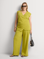 Our Soft Touch Gold Trim Wrap Top has a flattering wrap front and v-neck with gold trim for a luxe look. Wear it with the matching bottoms for an on-trend co-ord look.