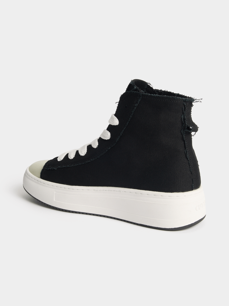 Step out in style with the Cutty Tampa Hi Top Black Sneaker. Made from durable canvas and polyester materials for long-lasting comfort. This sneaker features a stylish black colour with a high-top silhouette. Perfect for everyday wear with a classic touch. Reward yourself with the sleek design and exceptional quality of these sneakers.