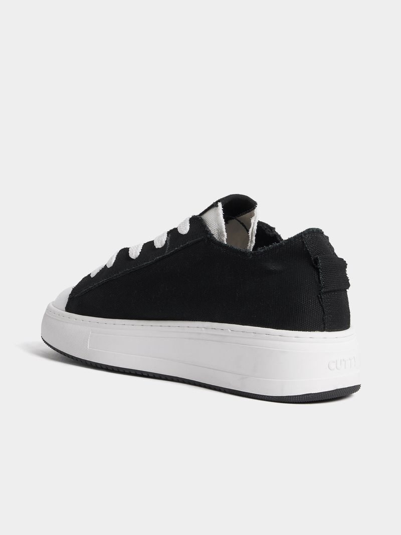 Step up your style game with the Cutty Tampa Low Black Sneaker. This trendy sneaker boasts a sleek canvas upper and contrasting white soles for a versatile and stylish look. Perfect for casual outings, the minimalist design and subtle stitching details make it a must-have for fashion-forward individuals seeking both comfort and style.