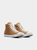 Step up your sneaker game with the Converse Chuck Taylor All Star Hi in vibrant orange and white. Made from durable canvas, these sneakers are perfect for everyday wear. With a classic design and comfortable fit, you'll be turning heads wherever you go. Plus, enjoy easy returns and discounts with our rewards program.