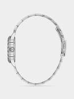 This glamorous Crystal-embellished Silver Plated bracelet watch features a round case and silver toned dial.