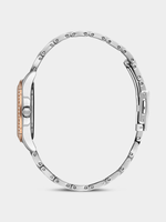 This stylish watch features a Silver Plated round case, sleek silver toned dial and Stainless Steel bracelet strap.