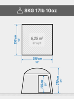 - Dimensions: Length 250 x Width 250 x Height 215cm