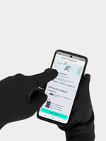Adult dual-material touchscreen gloves. Brushed fabric on the top of the hand provides warmth and comfort. Breathable fabric on the inside of the hand eliminates the vapour generated by the body.