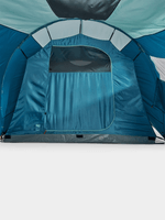 Living Room and Bedroom: 5m² living area and an inner tent height of 1.90m. This tent is fitted with a fold-away basin-shaped groundsheet at the entrance in case of rain and a transparent shuttered window. The bedroom in this tent is intended to accommodate a maximum of four 60cm wide mattresses.