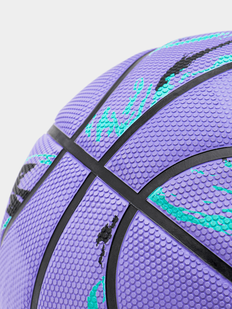 - A high-quality, official basketball with a unique purple and turquoise color scheme, designed for competitive play