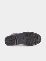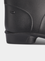 - A pair of long, black boots designed for kids, specifically for horse riding, made from eco-friendly materials
