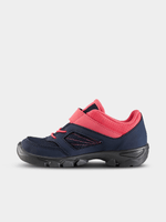 - These kids' hiking shoes, designed for Junior size 7 to Adult size 2, feature a bold pink and blue color scheme