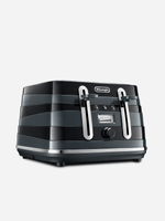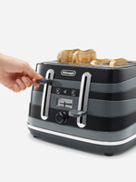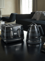 Elevate your kitchen with the Delonghi Avvolta 4 Slice Toaster. The body, wrapped in horizontal asymmetric resin rings, evokes constantly moving horizons for a sculptural effect that makes it as stylish as it is functional. Pair the toaster with the 1.7L kettle for a coordinated look.