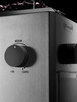 The Delonghi Stainless Steel Burr Coffee Grinder produces a uniform ground texture for the most consistent results with the burr grinding wheel. You can choose the perfect grind setting from coarse to medium to fine. This grinder can grind 4-12 cups of coffee with the quantity control knob.