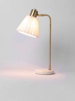 Stylish and elegant, our Pleated Shade Marble Base Desk Lamp brings on-trend style to your home office or bedroom. An antique brass body is set on a white marble base and completed by a pleated cotton shade. Whether for directional light on a desk or a bedside table, this compact lamp is ideal for smaller spaces.