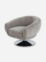 The Dexter Swivel Chair offers a modern and versatile seating solution. With a 360-degree swivel mechanism and sturdy chrome base, it combines style and functionality. The chair's round shape and blue fabric upholstery provide a contemporary look, making it suitable for home or office use.