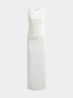 Our Draped Column Dress is stylish and flattering. The detail and classic column fit make it a versatile addition to your collection. Wear it to the office with chic flats, or dress it up with heels and a blazer.