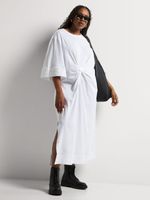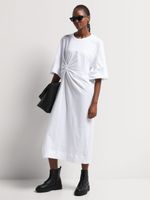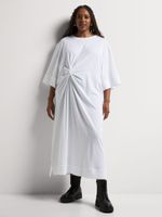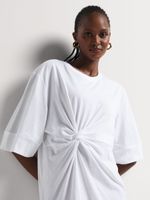This Draped Knot Detail T-shirt Dress is the perfect everyday look. Comfortable and stylish, this lightweight and breathable dress looks super chic with its draped and knotted detail. Dress it down with sneakers or up with ankle boots.