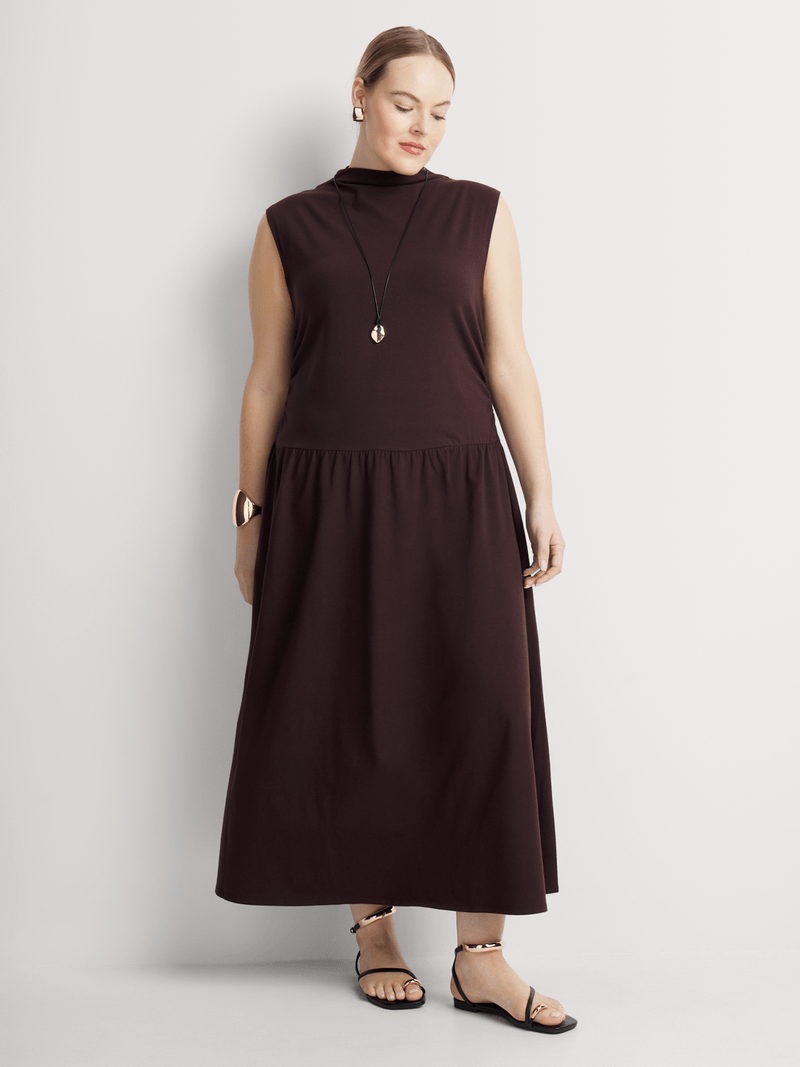 Our Drop Waist Column Dress is made from comfortable cotton stretch with an on-trend dropped waist and midi-length hem. Dress it up with a blazer and heels for the office, or pair it with sneakers or flats on the weekend.