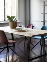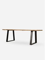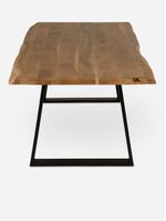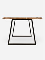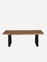 The Dune Dining Table perfectly blends modern industrial design with natural, organic elements. Its live-edge solid wood top, rich with natural grain and raw texture, adds warmth and character, while the sleek, black metal sled legs provide a bold, modern contrast. This striking combination of rustic charm and industrial edge makes it the perfect gathering spot for family and friends.