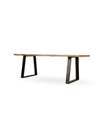 The Dune Dining Table perfectly combines modern design and natural materials. Angular metal legs hold a solid acacia wood top with beautiful grain and knot detail, and organic live edges. The Dune Dining Table brings a warm, natural aesthetic to your dining room and living spaces.