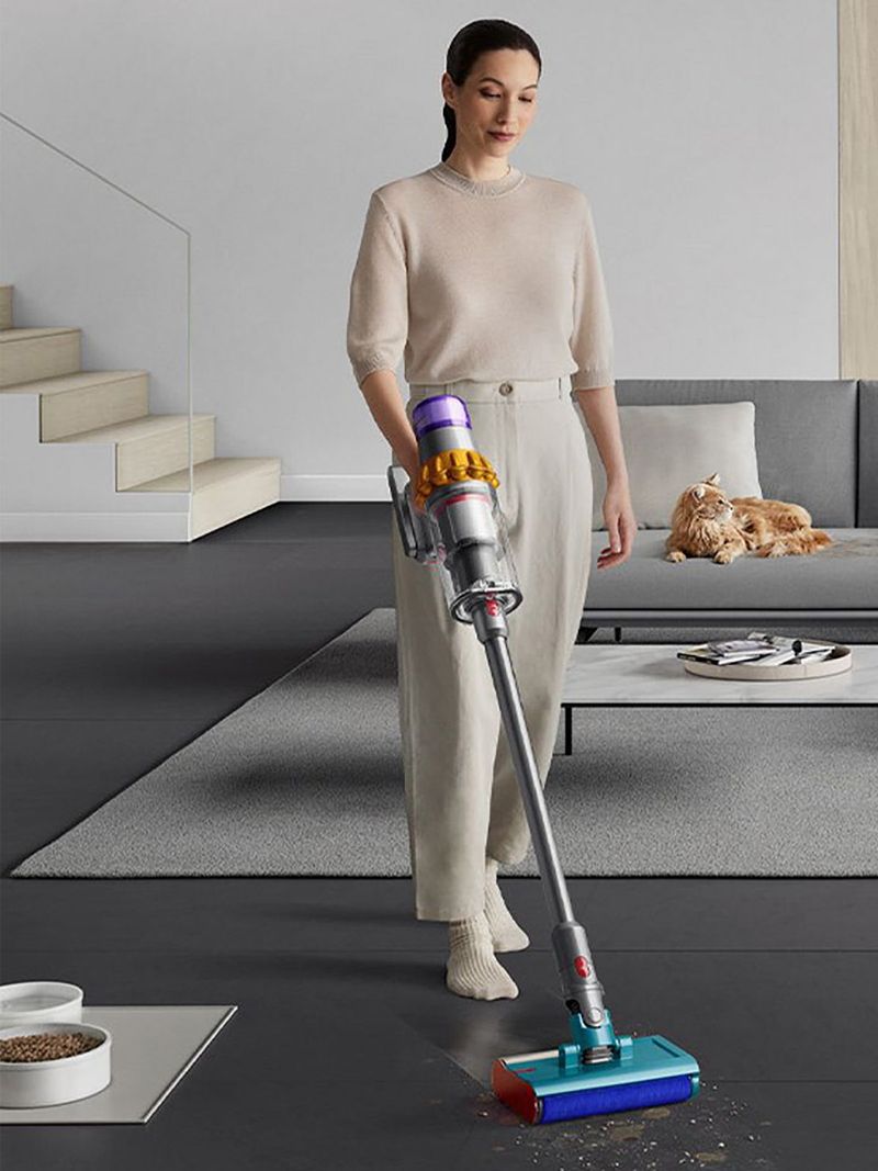 Take home cleaning to the next level with the Dyson V15 SV47 Submarine Wet & Dry Vacuum. This powerful multifunctional cleaner has got every cleaning scenario covered with a range of heads to suit every task. Clean spills with the Submarine wet roller head - engineered to clean tile, stone, wood, ceramic, vinyl, linoleum and laminate floors. The Fluffy Optic Cleaner head lights up invisible dust particles on hard flooring so you don't miss a thing and the Motorbar cleaner head with stiff nylon bristles and detangling technology is great for picking up hair and dust on carpets and hard floors.