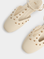 Step out in style with Jet's Ecru Studded Anklette Pumps! These sleek pumps feature a chic studded anklette detail that adds a touch of edge to any outfit. Made from durable polyurethane, these pumps are both stylish and comfortable.