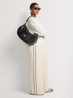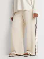 On-trend and ultra-stylish, our Elasticated Waist Side Stripe Wide Leg Pants feature a comfortable elasticated waistband, wide leg, and side tape stripe detail down the leg. Wear these sports-luxe style pants with a graphic tee and sneakers, or a satin shirt and heels.