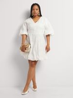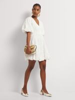 A little white dress is a summer essential. Wear our Embroidered Fit & Flare Bubble Hem Dress with flat sandals and chunky jewellery for a stylish off-duty look.