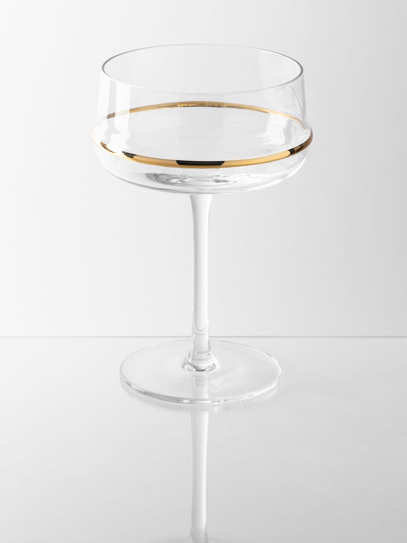 The Eminence Coupe Glass Gold is a masterpiece of refined craftsmanship. Handmade from high-quality glass, this elegant coupe exudes sophistication with its delicate gold trim, adding a touch of luxury to every pour. This timeless piece is designed to impress.