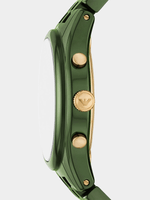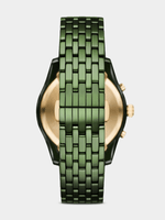 Crafted entirely from green ceramic, this 43 mm chronograph watch showcases a seamless monochromatic design with gold-tone accents. The green sunray dial features three sub eyes, coupling functionality and visual intrigue for a stand out silhouette.