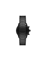 This chronograph men's watch features a bold black dial with gunmetal stick indices and a Stainless Steel bracelet strap. The epitome of modern sophistication.