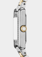 Emporio Armani's 20 x 26 mm watch showcases a warm grey sunray dial with Roman numeral indexes in a two-tone stainless steel case with crystal embellishment. The two-tone stainless steel bracelet ensures a refined look, making this two-hand movement dress watch sure to stand the test of time in your collection.