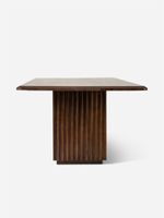 The Erin Dining Table is a bold centrepiece that blends contemporary design with timeless style. The deep and rich dark stain, broad rectangular solid wood tabletop, and striking fluted base exude modern sophistication and add depth to any dining space. It's locally made with quality materials and craftsmanship to ensure enduring style and durability.