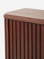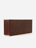 The Erin Sideboard is a bold decor piece that blends contemporary design with timeless style. The deep and rich dark stain and striking fluted base exude modern sophistication and add depth to any living space. A brass metal plinth and door handles bring luxe details to the design. Internal shelving offers plenty of storage space. It's locally made with quality materials and craftsmanship to ensure enduring style and durability.