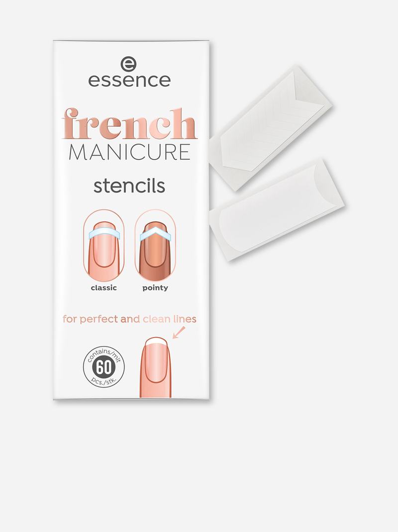 With the essence french MANICURE stencils you can create French nails in no time at all: Crescent-shaped and tapered templates are perfect for precisely styled nail tips.
