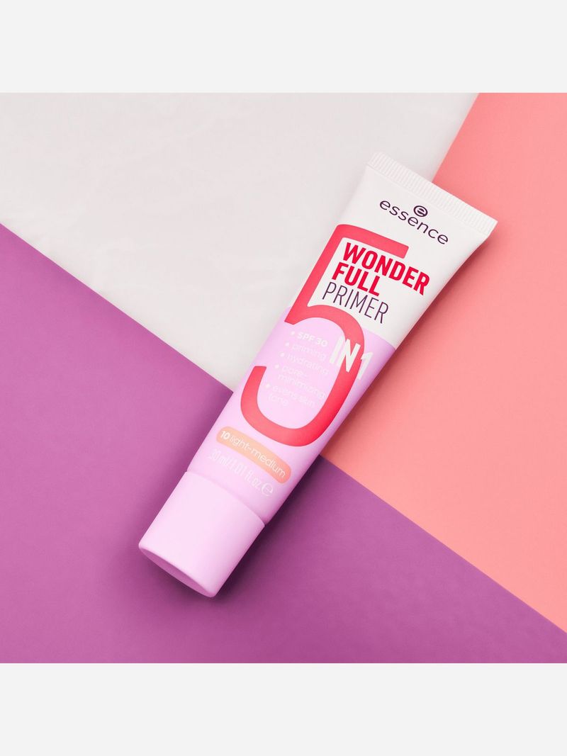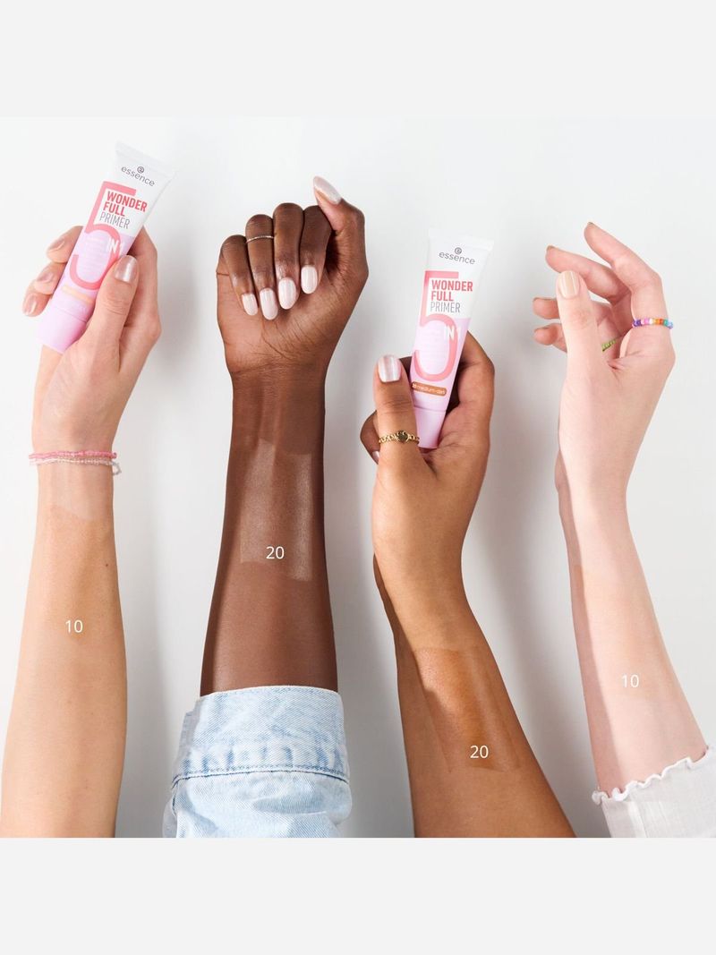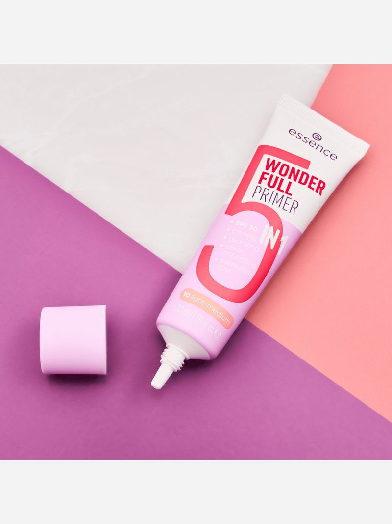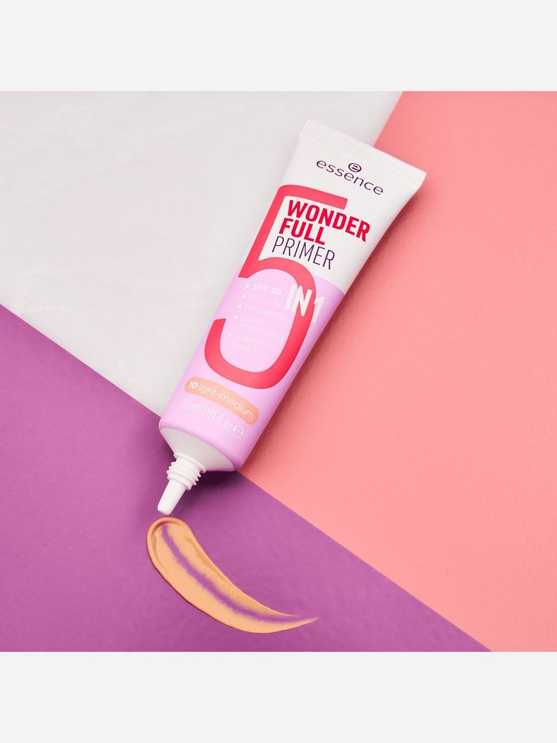 Prepare your face for your favourite make-up look with the essence WONDER FULL PRIMER 5 IN 1 20 medium-dark. The primer comes in a sheer brown shade and is ideal for medium to darker skin tones. The primer also gives your skin a healthy look and has SPF 30 to protect it. The smooth texture will help reduce any imperfections and leave your face with a matte airbrushed look. All pores and fine lines seemingly disappear, giving you the perfect base for any make-up look.