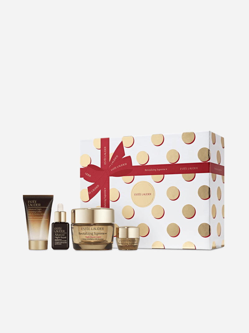 A great gift set including a full-size Revitalizing Supreme+ Moisturizer. This daily regimen helps to significantly improve firmness, density and elasticity for a more lifted look. Skin glows with a new healthy-looking vitality.