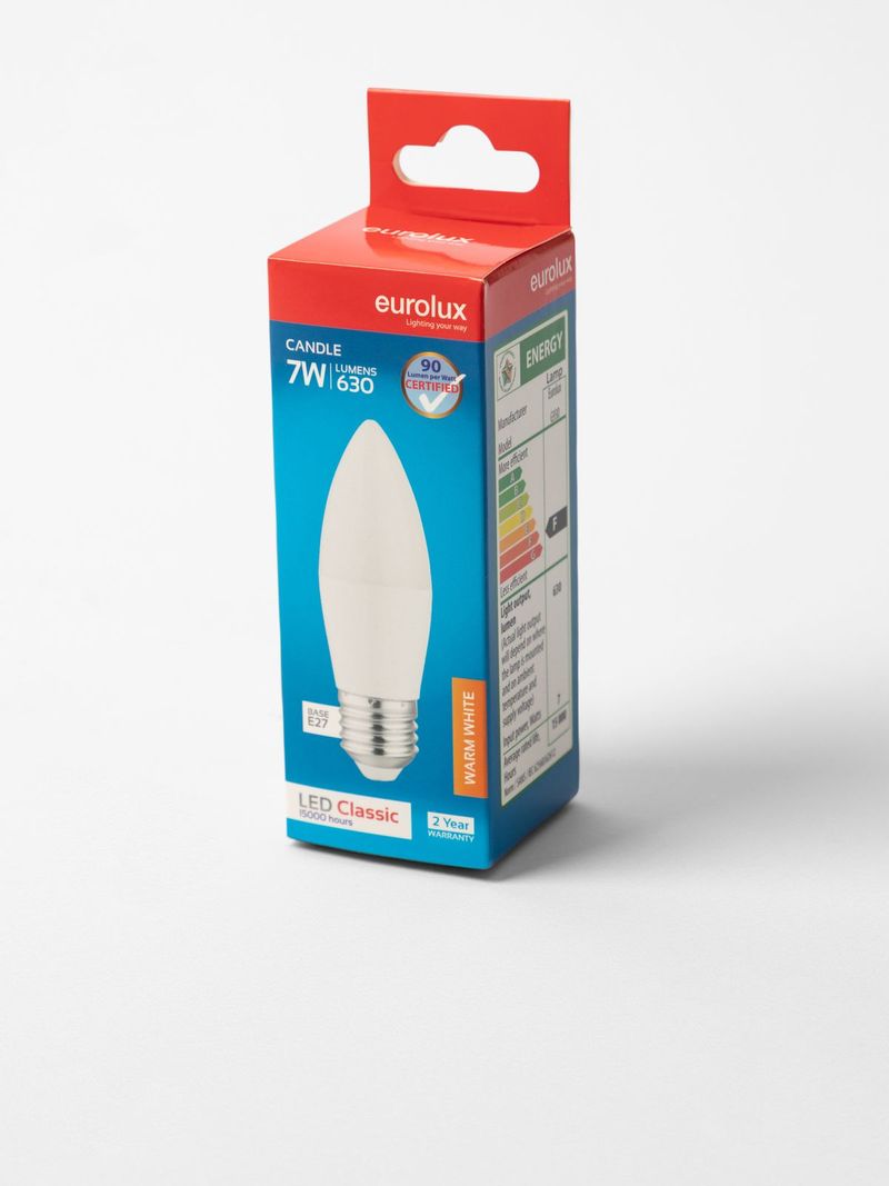 Eurolux LED Classic Candle Bulb Warm White is an LED energy-saving bulb with a life expectancy of 15,000 hours. Perfect for lighting up your lounge or bedroom.
