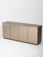 The Eva Mirror Sideboard brings a luxurious feel to your space with its rich oak veneer for natural warmth and texture and mirror-fronted cupboards with a soft bronze hue, adding depth and a subtle reflective quality. A sleek, rectangular silhouette with clean lines complements contemporary spaces and decor styles.