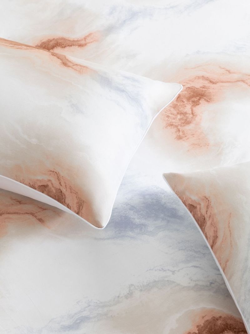 Refresh your sleep space with the Everynight Desert Marble 200TC Cotton Sateen Duvet Cover Set. Made from silky smooth 100% cotton sateen with a 200 thread count, it's lightweight and breathable, perfect for year-round use. The abstract marble-inspired print brings a natural feel and subtle colours to your bed.