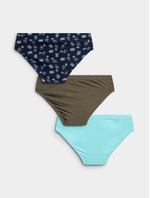 Upgrade your little one's underwear collection with this 3-pack of dino briefs in navy, fatigue and blue. Made from comfortable cotton. Keep your child feeling fresh and comfy all day long!
