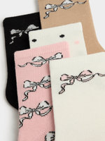 Step up your sock game with our Exact 5-pack socks featuring fun bow prints. Made from a cozy cotton blend, these socks are perfect for adding a pop of personality to any outfit. With a variety of designs in each pack, you'll always have a stylish option on hand. These socks are sure to keep your feet comfortable all day long.