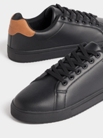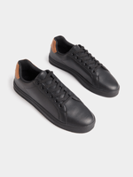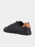 Step up your sneaker game with these sleek lace-up court sneakers in classic black with brown accents. These stylish kicks are designed for both comfort and style. They're the perfect sneakers for everyday wear and are easy to style with any outfit. So why wait? Elevate your shoe collection today!