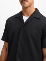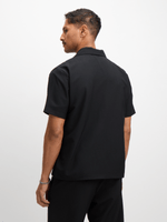 Elevate your party look with this Exact black crop shirt. This shirt features a classic collar, short sleeves, and a button-up design. Pair it with the matching pants for a sleek and polished look ready for any occasion.