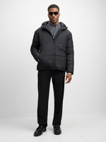 Stay warm in style with our Exact black puffer jacket. Made from durable ripstop fabric, featuring an adjustable hood and side zip pockets. Keep cozy without compromising on fashion. Perfect for chilly days.