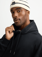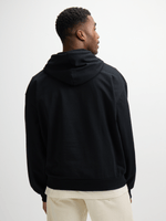 Stay warm and stylish with our Exact black hoodie. Made from cotton rich fleece, this hoodie features a hood with a drawstring and a front kangaroo pocket. Pair with your favorite bottoms for a casual look.