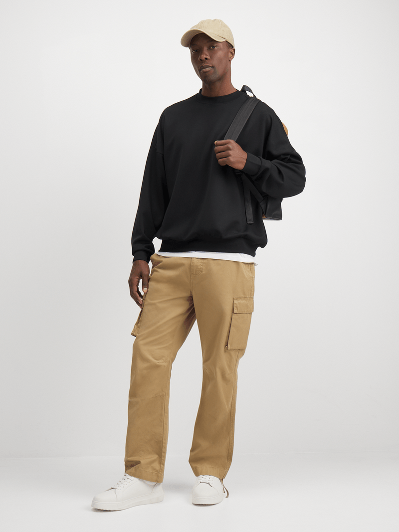 Stay stylish and comfortable in this Exact black sweat top. Made from soft touch scuba fabric, featuring a ribbed crew neck, hems, and cuffs for added style. This top is a versatile and trendy addition to any wardrobe.