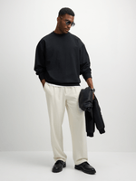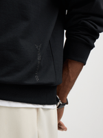 Elevate your casual look with this comfy black sweat top. Crafted from soft cotton rich fleece fabric, it features a ribbed crew neck, hem, and sleeve cuffs for added style. Pair it with matching joggers or your favorite denim for a laid-back vibe