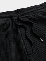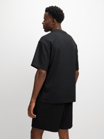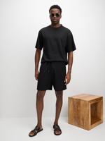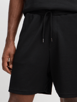Stay comfy and stylish in these black textured shorts. Made from a textured jacquard fabric, features 2 sides pockets and an elasticated waistband with drawstring. Perfect for pairing with the matching tee for a laid-back look.
