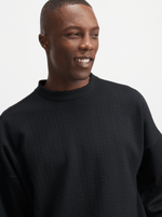 Stay comfortable and stylish with the Exact black textured sweat top. Made from a unique textured fabric, featuring a ribbed crew neck, hem, and sleeve cuffs for added style. This top is a versatile and trendy addition to any wardrobe, you can pair it with the matching joggers.